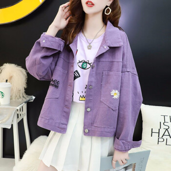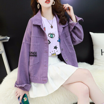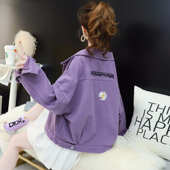 歌卡兰短外套女早秋新品女装2020小雏菊女装牛仔外套女宽松韩版洋气短款开衫网红紫色上衣风衣女2305 紫色 L |