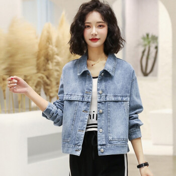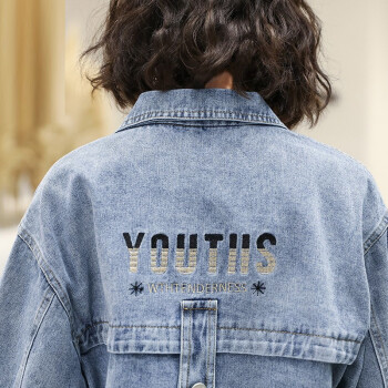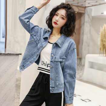玄衣然 牛仔外套女2020春秋新款韩版宽松显瘦时尚洋气短款简约英文刺绣上衣潮 图片色 L |