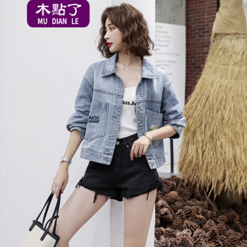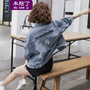 木點了 牛仔外套女2020秋新款时尚潮流舒适长袖宽松休闲气质短外套牛仔衣女2081A 图片色 M |