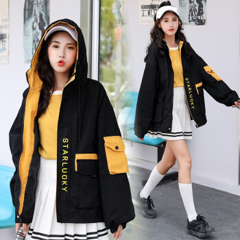 轩薇奴短外套女2020秋季新款女装韩版时尚大码宽松显瘦连帽工装风衣港味ins棒球服女X2181 黄色 M |
