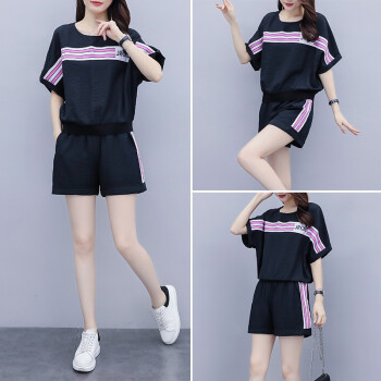 睡妍 大码女装套装女夏2020夏季新品韩版胖mm宽松显瘦短袖T恤短裤两件套休闲套装女 7319 黑色 XXL(135-155斤) |