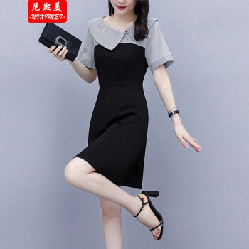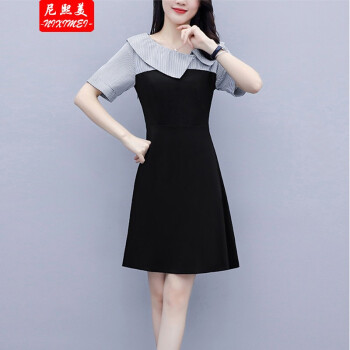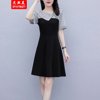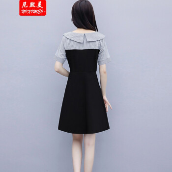 尼熙美 大码女装胖mm2020新款胖妹妹夏装宽松显瘦遮肚子连衣裙拼接加肥加大码遮肉桔梗裙 黑色 3XL 建议145-160斤 |