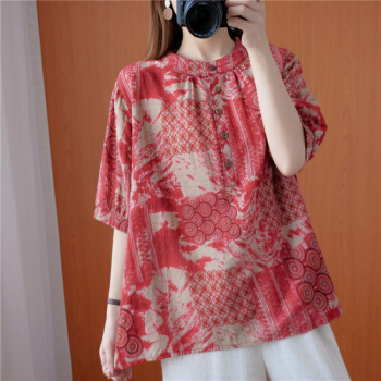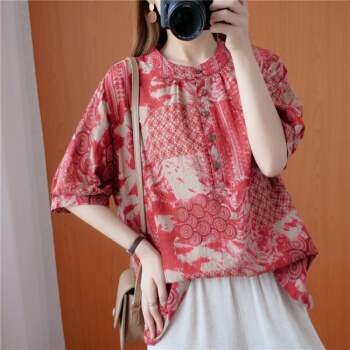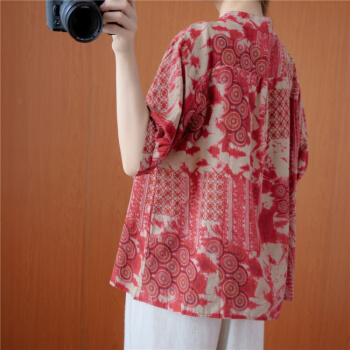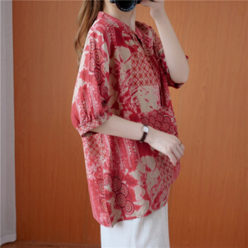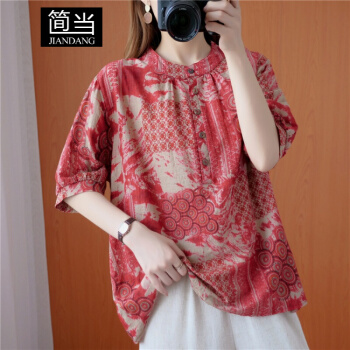 简当2020夏装新款加肥加大码女装胖妹妹MM涂鸦渲染纽扣短袖胖MM遮肚显瘦衬衫T恤上衣BS1988 图色 大码均码 |