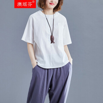 澳瑶芬 胖妹妹夏装2020年加肥加大码女装胖mm新款女宽松百搭短袖上衣女微胖复古气质短袖衬衫女 白色 3xl(建议185-200斤左右) |