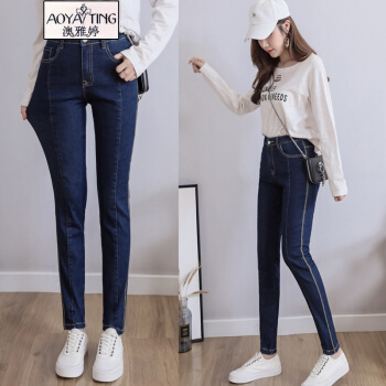 澳雅婷大码牛仔裤女胖mm200斤胖妹妹秋装2020年新款弹力显瘦修身高腰小脚长裤子9019 深蓝色 4XL 建议您170-190斤 |