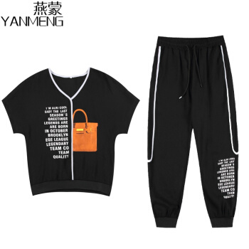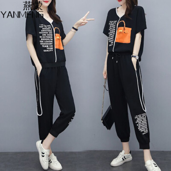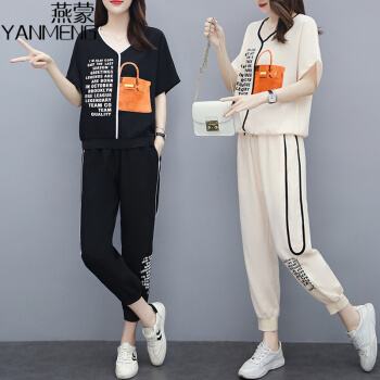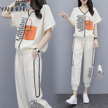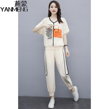 燕蒙 大码女装短袖t恤套装女2020夏季新款加肥加大宽松显瘦时尚胖mm200斤休闲裤运动两件套M21 杏色 2XL【建议135-155斤】 |