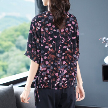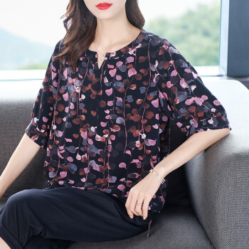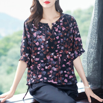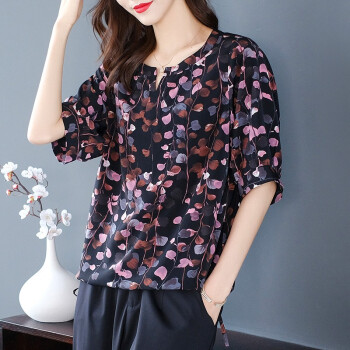 木棉林胖妹妹mm短袖上衣加大码女装2020新款夏装洋气印花宽松遮肚子显瘦T恤Z202729 黑色 3XL建议160-180斤 |