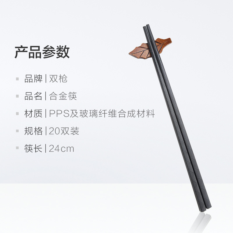 双枪 无漆无蜡不锈纯色合金 20双装【pps+玻璃纤维/黑色】 |