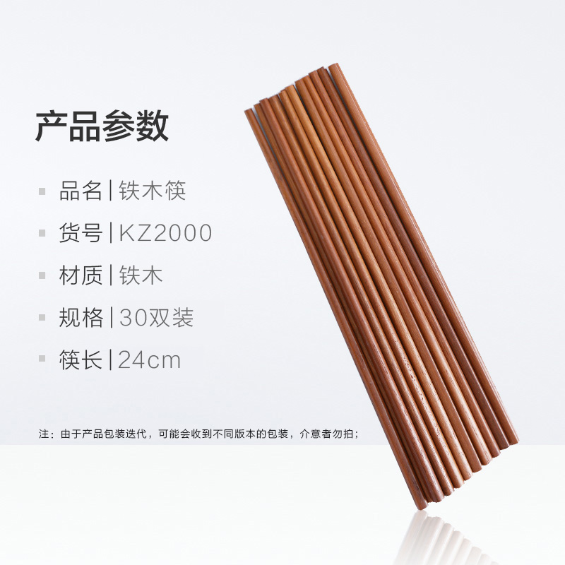 双枪 天然家用铁木筷30双装【铁木/木原色】 |