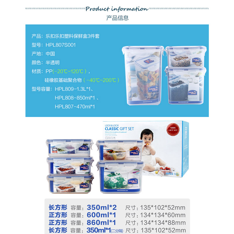 塑料饭盒便当盒保鲜盒8只装【塑料/透明】 |