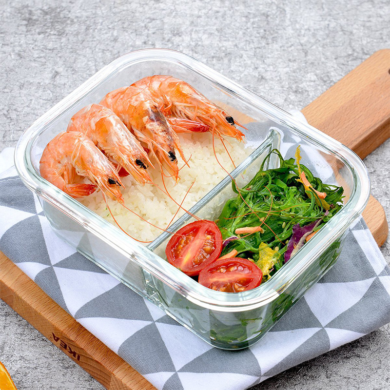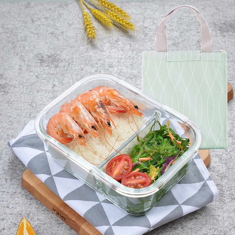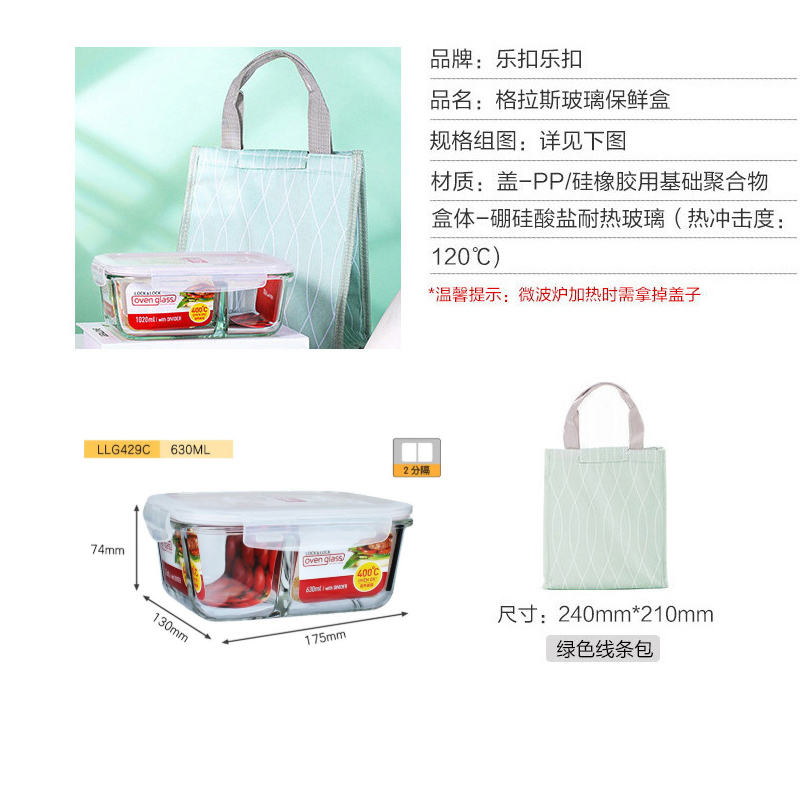 玻璃饭盒分隔耐热微波炉长方形玻璃密封保鲜盒 送时尚便当包【玻璃/透明】 |