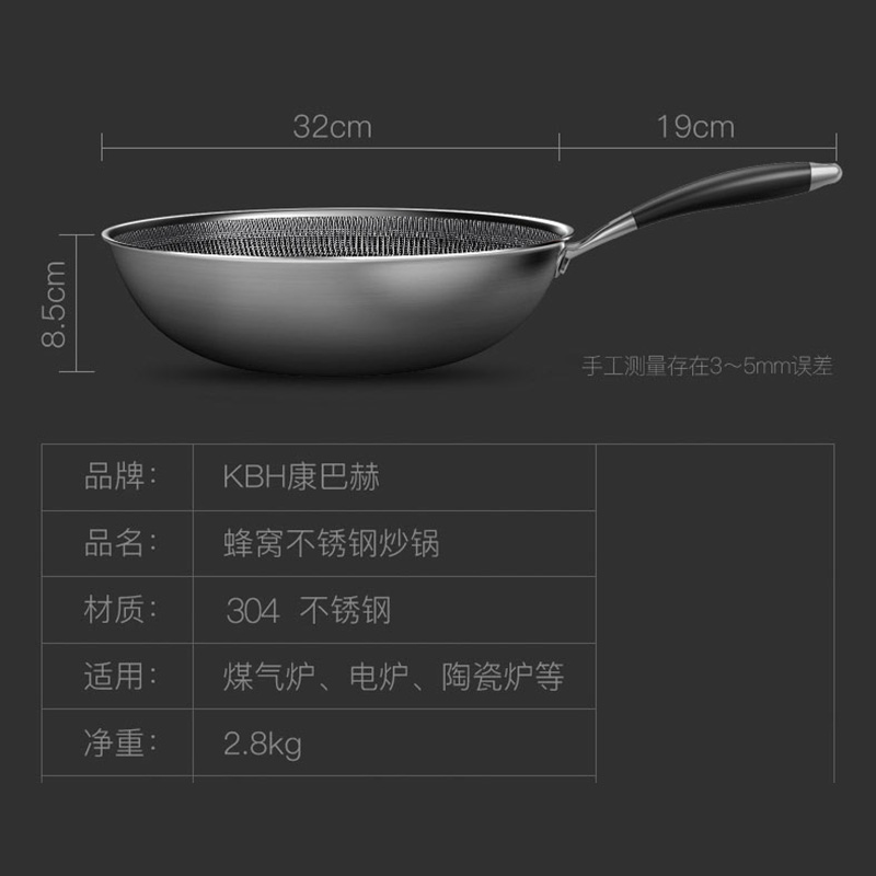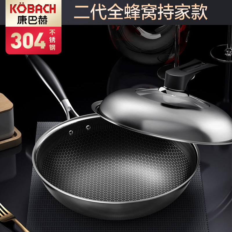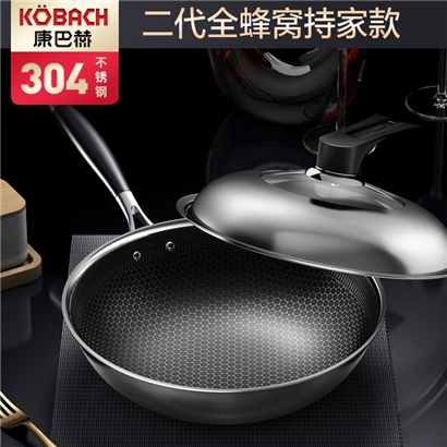 康巴赫二代系列持家款蜂巢304炒锅【送钢铲+钢勺!】【304不锈钢/银色】 |