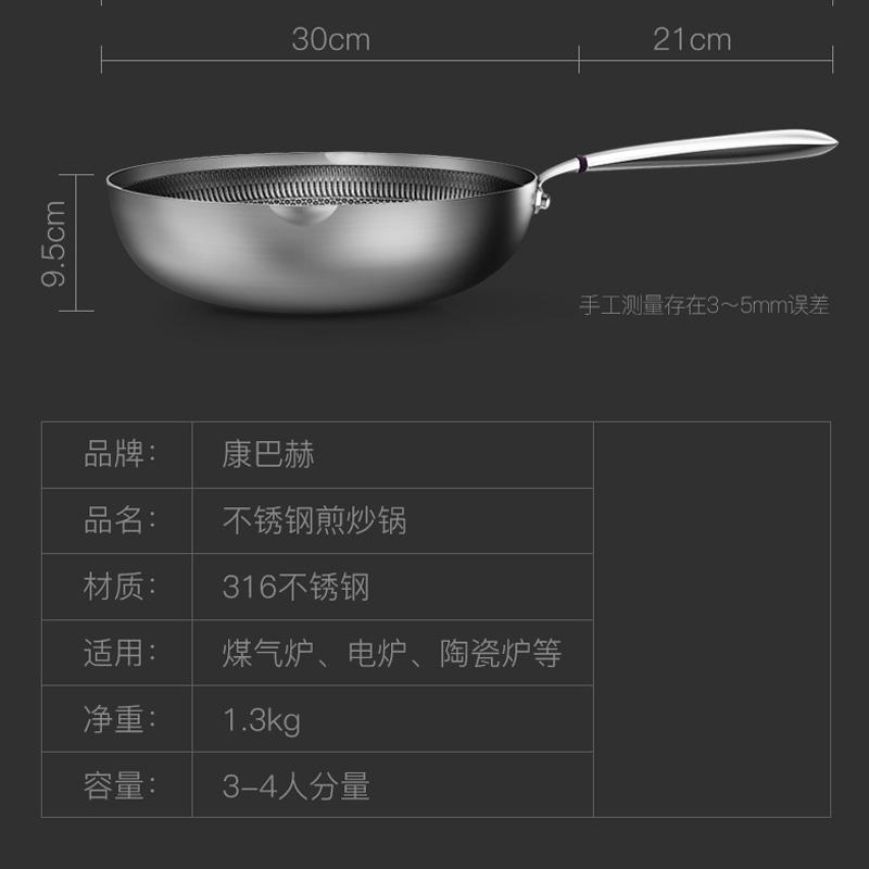 【购买加送清洁膏1瓶】康巴赫316不锈钢煎炒两用锅30cm(送不锈钢锅铲)【316不锈钢/图片色】 |