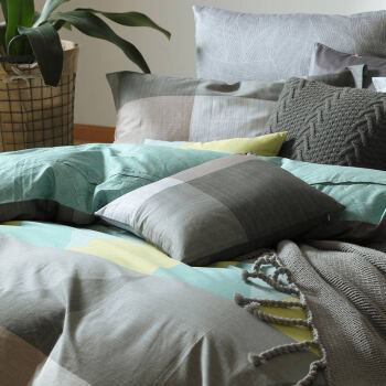 水星家纺出品 百丽丝 全棉格子四件套 纯棉床单被套 中性简约 星尚旋风 双人 1.8米床 220*240cm |