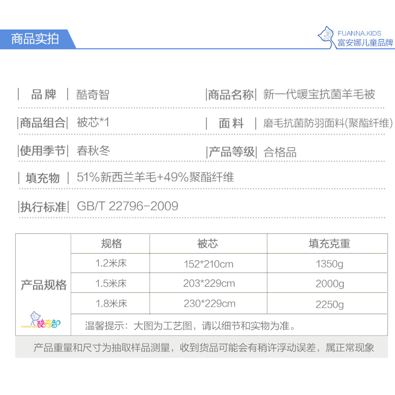 新一代暖宝抗菌羊毛被(被芯1件)(适合1.2米床)【全涤抗菌磨毛防羽/白】 |