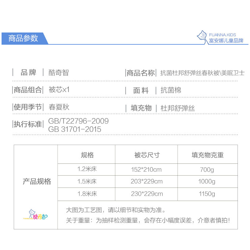 美眠卫士 抗菌杜邦舒弹丝春秋被(被芯1件)(适合1.2米床)【40支斜纹133*72(抗菌棉)/粉】 |