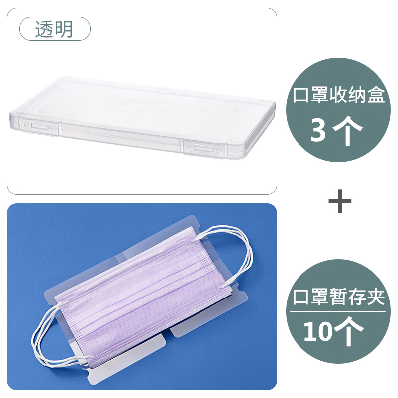 口罩收纳盒3个+收纳夹10个【PP/透明色】 |