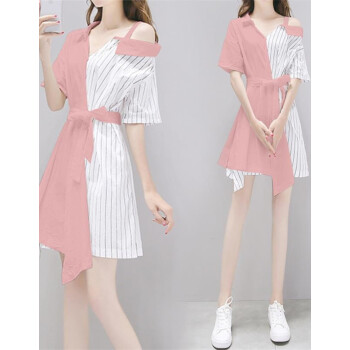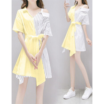 予蒙 一字肩修身吊带连衣裙女夏季2020新款韩版流行小个子显瘦女装气质超仙名媛夏装衬衫裙子 白色 M(建议100-110斤) |