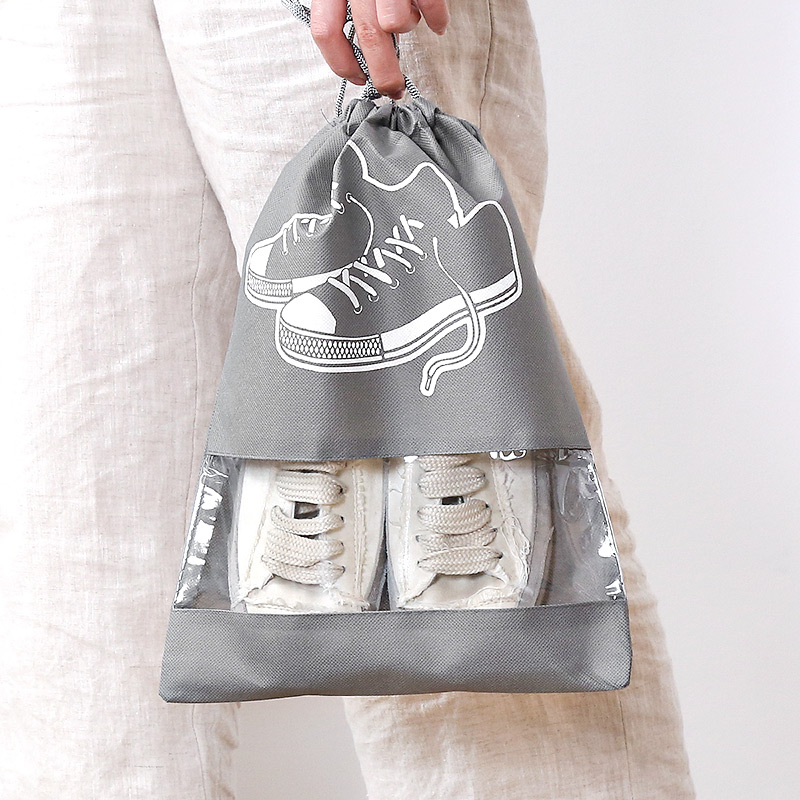 束口鞋袋收纳袋10个【无纺布/灰色】 |