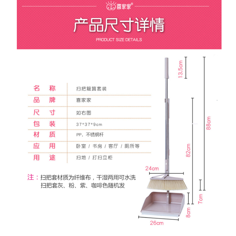 扫把簸箕套装+扫把套1个【PP+不锈钢杆/纤维布/颜色随机】 |