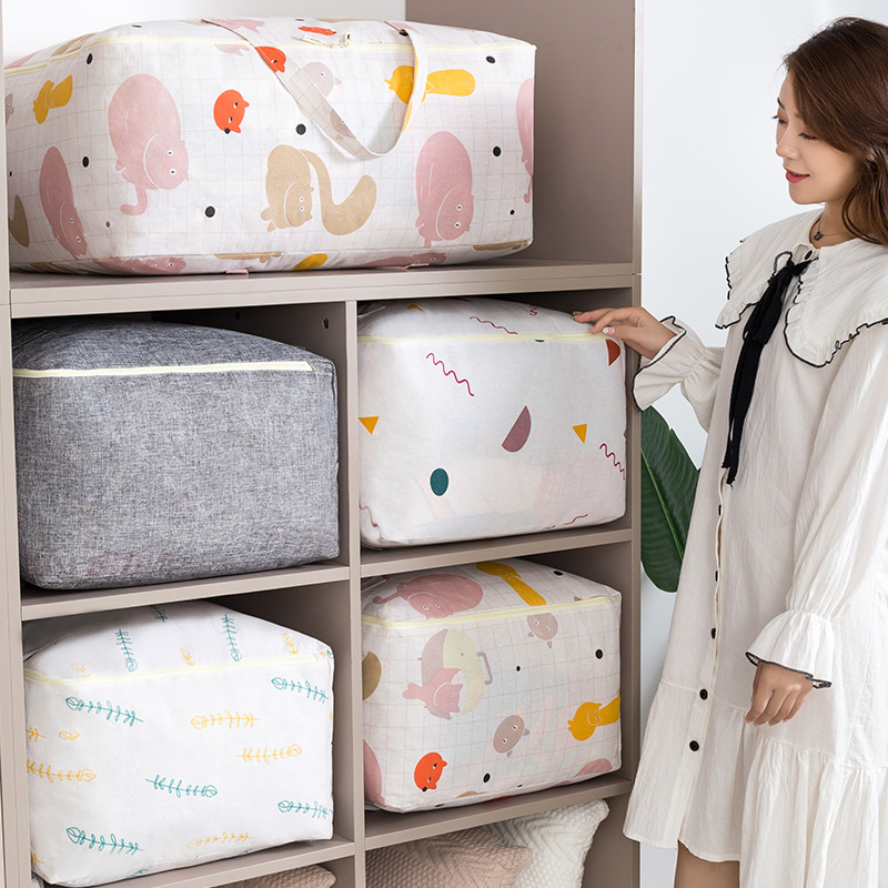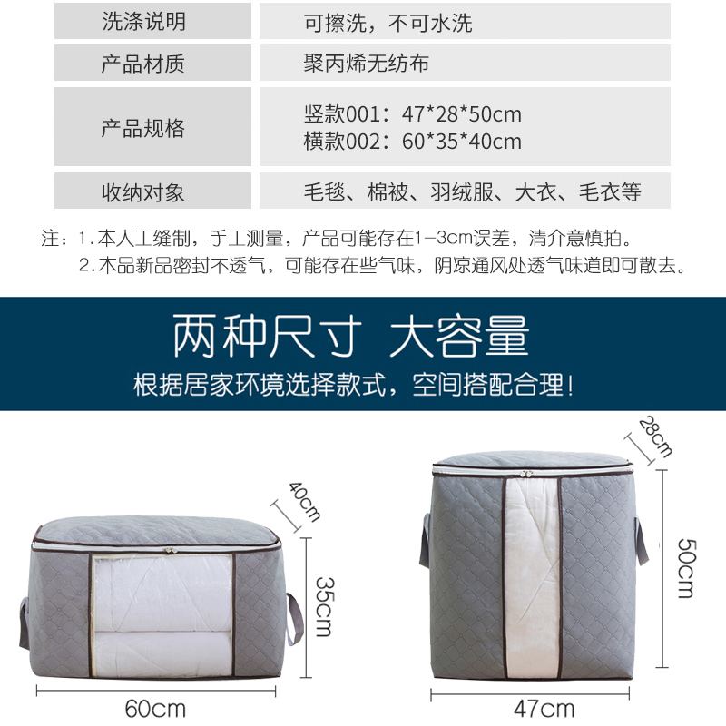衣服棉被收纳袋4个【无纺布+棉质/灰色】 |