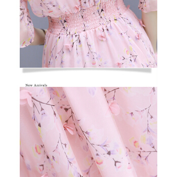 欧芙伦碎花雪纺连衣裙女2020夏季新款韩版时尚气质显瘦减龄收腰中长款裙子女5935 粉色 M |