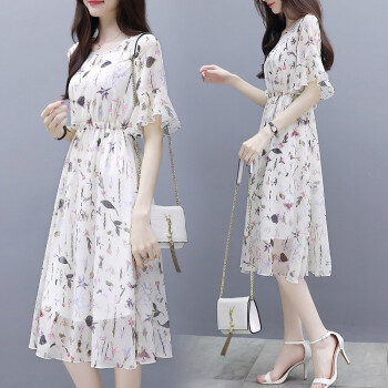 巷前 连衣裙2020夏季新款女装流行轻熟风温柔气质收腰显瘦碎花仙女超仙连衣裙子中长款 白色 M |