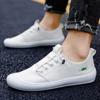 男鞋夏季2020新品鞋子男潮鞋户外休闲鞋小白鞋透气帆布鞋冰丝板鞋老爹鞋一脚蹬休闲懒人老北京布鞋 MX-H01白色 41 |