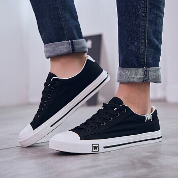 回力 Warrior 经典系带百搭男女情侣款纯色低帮休闲帆布鞋 WXY709T 黑色 42 |