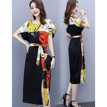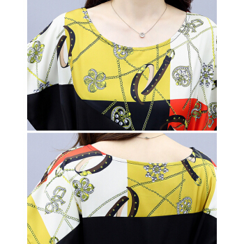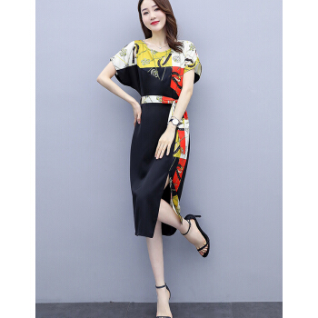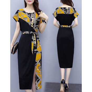 婪澈连衣裙女2020女装夏季新款时尚印花收腰直筒显瘦气质短袖裙子夏天 黄花 请下正确尺码 |