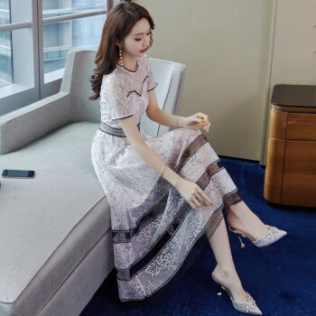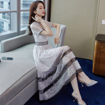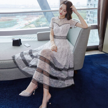 巷前 连衣裙2020新款夏季女装名媛仙女超仙蕾丝网纱收腰显瘦显高气质连衣裙子中长款 白色 M |