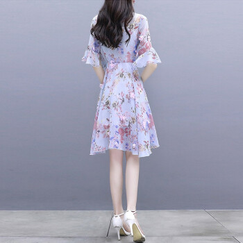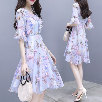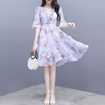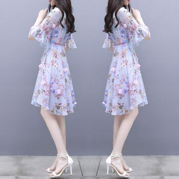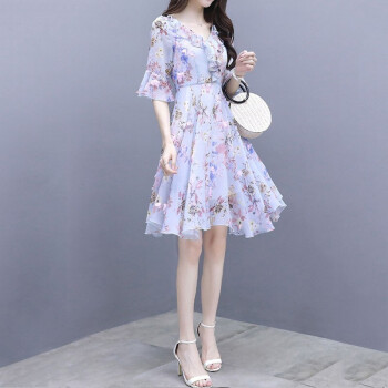 莱倪晟纳雪纺连衣裙女装2020夏季新款韩版中长款宽松显瘦性感沙滩裙子女潮 蓝色 请拍正确尺码 |