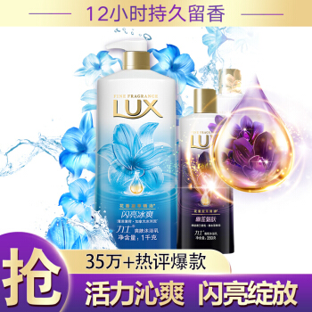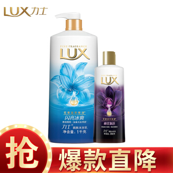 力士(LUX)沐浴乳套装 闪亮冰爽沐浴乳1000g+幽莲魅肤沐浴乳350g 沐浴露 |
