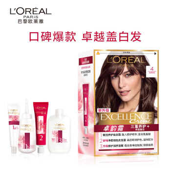 欧莱雅(LOREAL)卓韵霜护发染发霜#4(自然棕色)(不伤发染发膏 染发剂 遮白盖白 男女通用) |