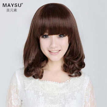 美元素 假发 女 齐刘海可爱修脸仿真蓬松梨花头卷发女士假发套hg66 2t33号深栗色 |