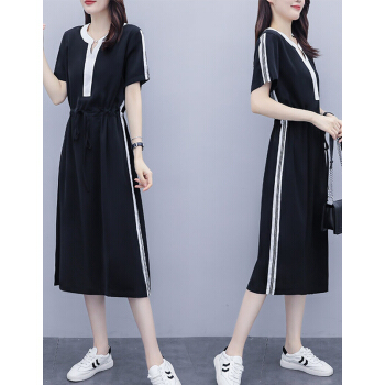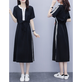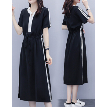 婪澈连衣裙女2020年女装夏季新款遮肚子显瘦洋气大码女装胖妹妹时尚收腰中长款连衣裙女 图片色 请下正确尺码 |