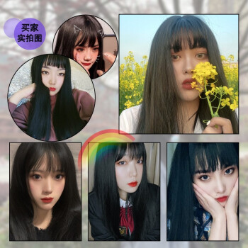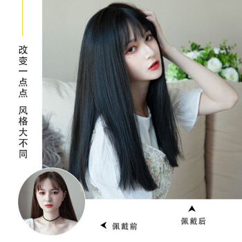 纵美 假发女中长发时尚内扣齐肩锁骨发自然逼真梨花头女士假发套 自然黑+护理五件套 |