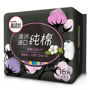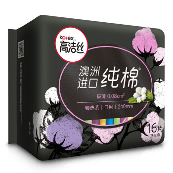 高洁丝Kotex 臻选澳洲进口纯棉0.08极薄240mm16片 日用超薄卫生巾 |