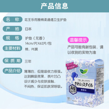 花王(KAO) 花王护垫进口日本花王乐而雅卫生巾护垫银离子14cm62片 2包 |