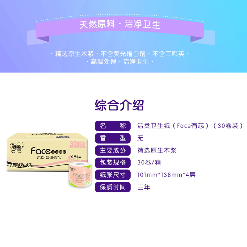 洁柔face系列有芯卷纸4层*120g*30卷 |