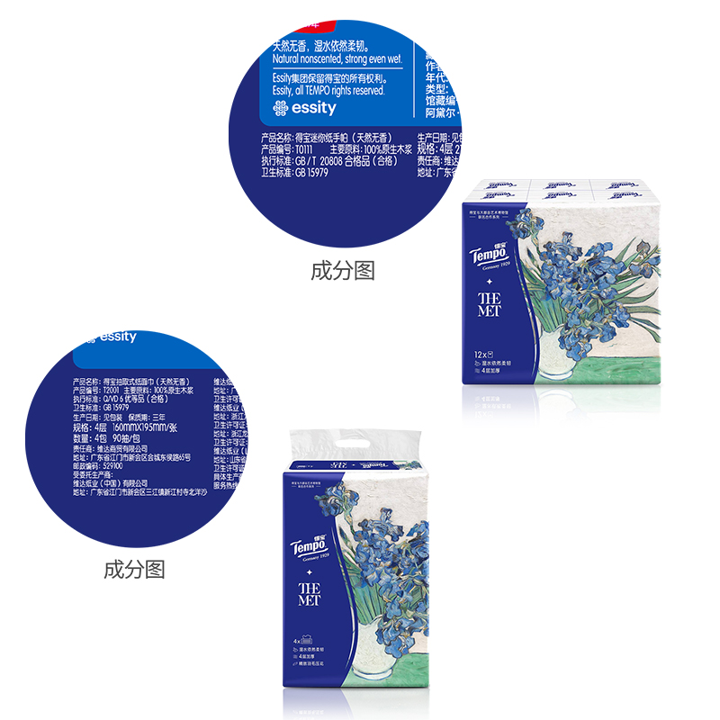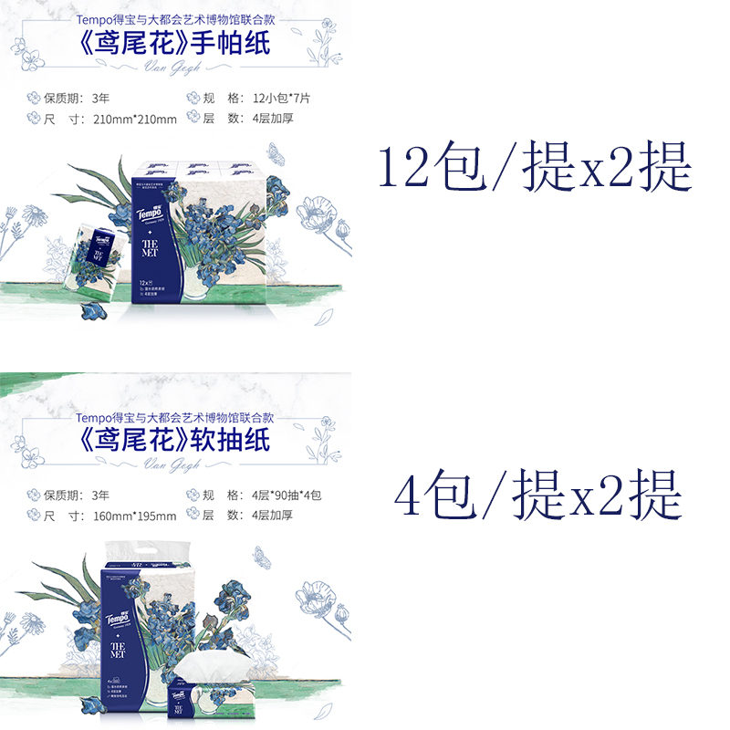 得宝抽取式面巾纸4包90抽2提+得宝迷你纸手帕12包7片2提(鸢尾款) |
