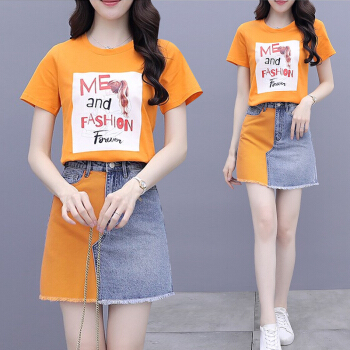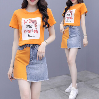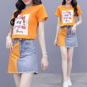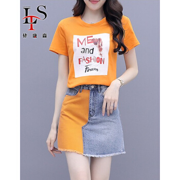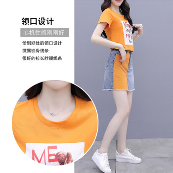 佬唐森牛仔连衣裙套装女2020夏季新款百搭显瘦套装半身裙子洋气两件套 图片色 请拍正确尺码 |