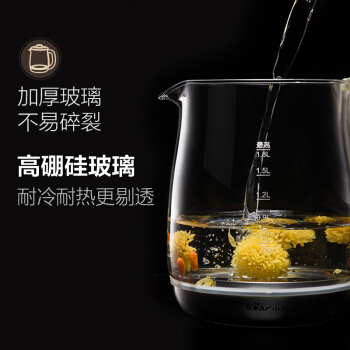 小熊(Bear)养生壶电水壶热水壶烧水壶 花茶壶养生锅玻璃加厚 黑茶煮茶壶煮茶器1.8L电热水壶YSH-C18R6 |