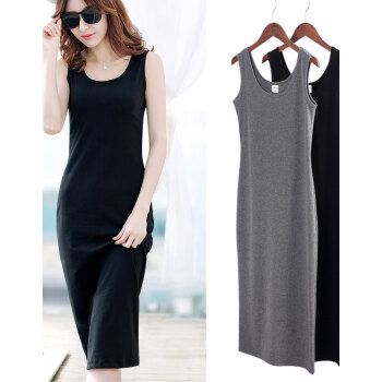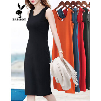 BABIBOY 吊带连衣裙女中长款2020夏季新款吊带背心时尚女装修身显瘦洋气无袖裙子 黑色 M |