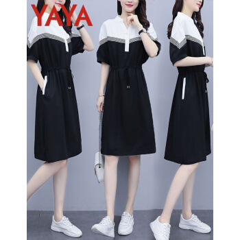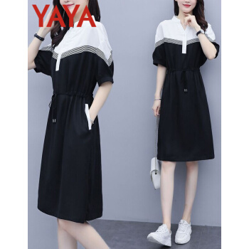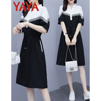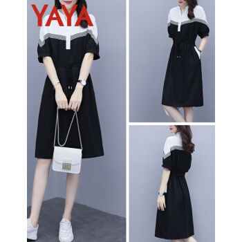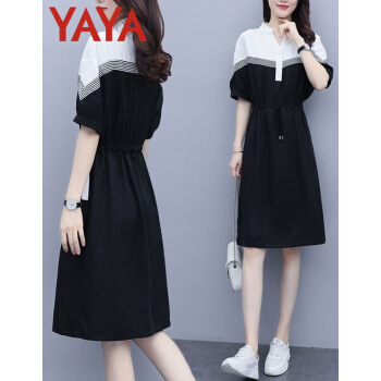 鸭鸭服饰(yaya)连衣裙女2020女装夏季新款大码女装气质显瘦中长款收腰减龄裙子女 黑色 请选正确尺码 |