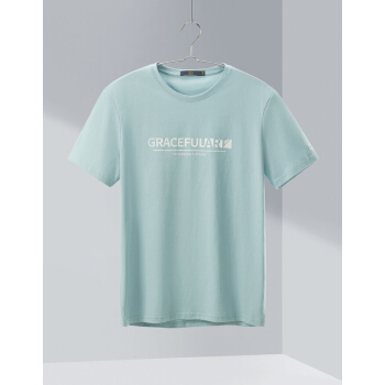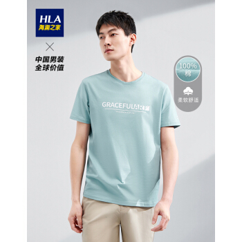 HLA海澜之家舒适半袖短袖T恤2020夏季新品圆领字母印花套头衫男HNTBJ2Q137A 浅绿花纹D7 175/92A/L |