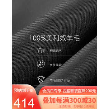 威可多VICUTU 男士商务正装舒适西裤 纯羊毛挺括有型西裤 VRS99321897 黑色 180/90-2.7尺 |