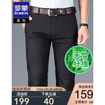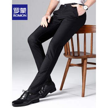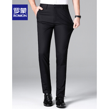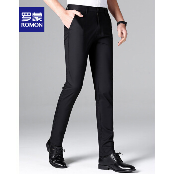 【专柜正品】罗蒙休闲西裤男竹纤维时尚2020春季新款商务黑色百搭正装修身抗皱西装免烫休闲男裤 黑色 32 |