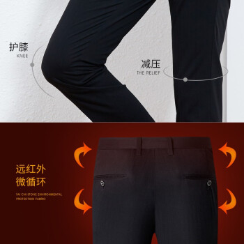 才子男装2020春秋季新品纯色修身微弹百搭易打理时尚商务休闲西裤男士 黑色 32/82cm |