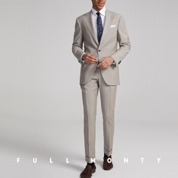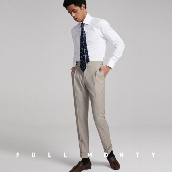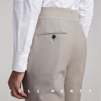 FULL MONTY米白色平纹绵羊毛西裤男高腰巴黎扣商务修身西装裤子春夏 米色1354 32 |